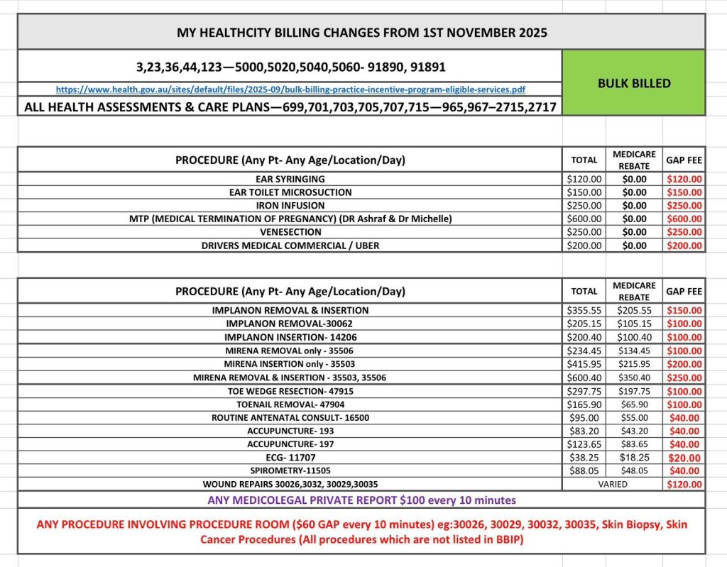 All our General Practitioners are mixed billing with a Medicare Rebate (to current Medicare card holders) 7 Days a week.